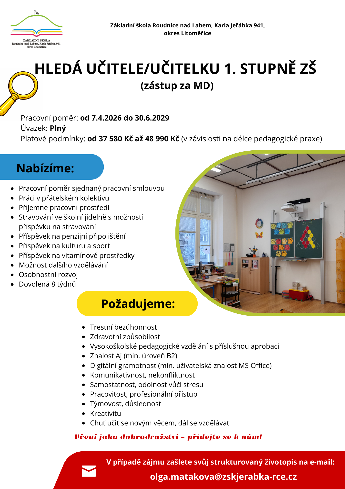 Rádi jezdíme na výlety a exkurze, ale také do divadla. Máme rádi projektovou, tematickou a badatelskou výuku.