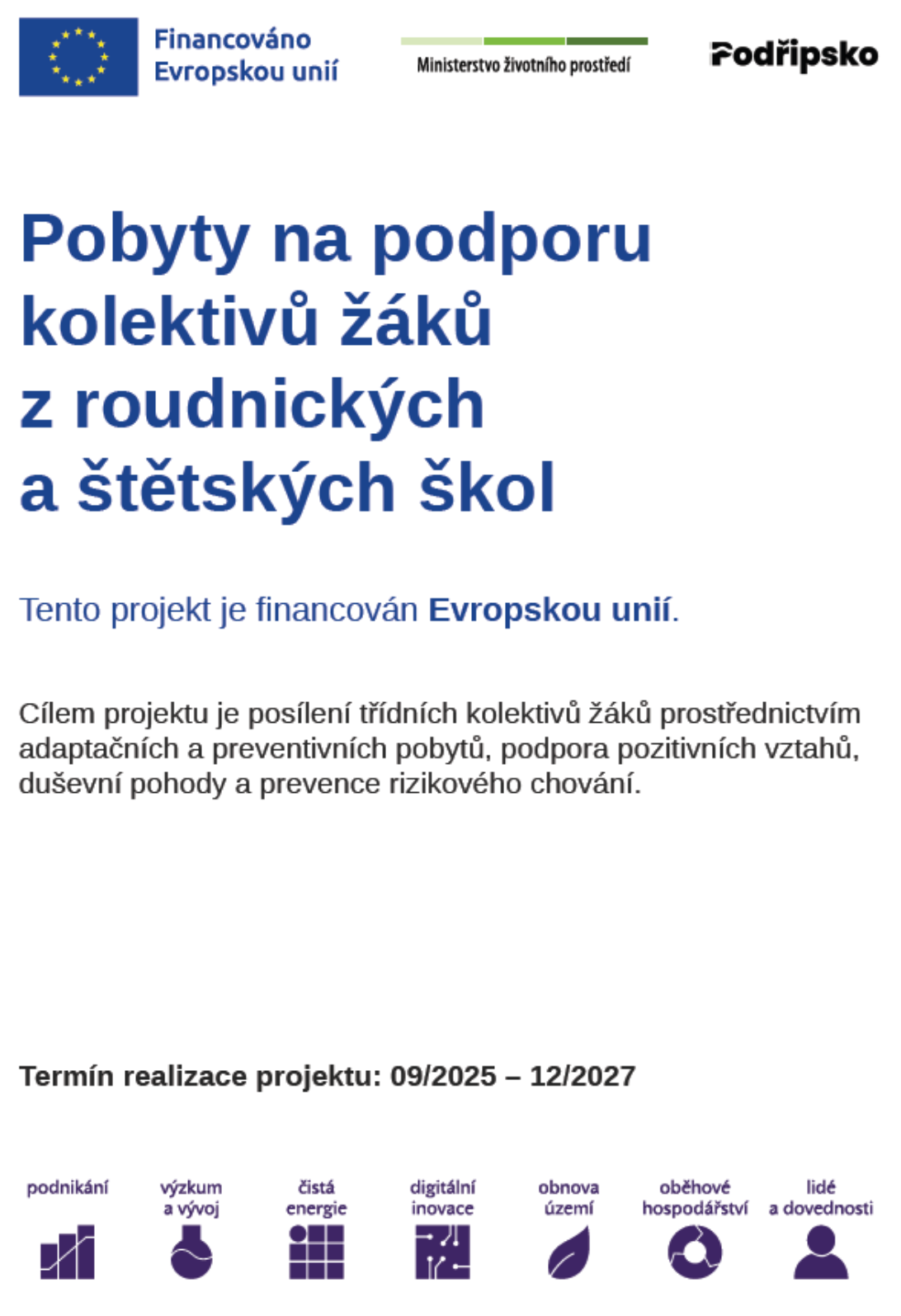 Naše škola dlouhodobě usiluje o vytváření bezpečného, podporujícího a přátelského prostředí, ve kterém se žáci mohou cítit dobře a rozvíjet své sociální i osobnostní kompetence. Proto jsme se zapojili do projektu zaměřeného na posílení třídních kolektivů prostřednictvím adaptačních kurzů a preventivních aktivit.