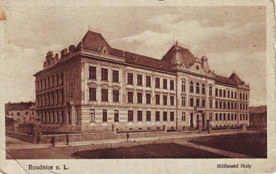 Koncem 19. století je Roudnice nad Labem městem, kde se rozvíjí hospodářský a kulturní život. Tehdejší měšťanská chlapecká škola (od roku 1874) a dívčí měšťanská škola (od roku 1883) prostorově už nestačila narůstajícímu počtu žáků. Proto v roce 1907 vypsala městská rada pod vedením vlasteneckého starosty Ervína Špindlera soutěž na novou budovu měšťanských škol. Zvítězil návrh architekta Viktora Šulce z Plzně. Fasádu navrhl architekt Fürst z Brandýsa nad Labem. Stavba byla zahájena na jaře 1911 místní stavební firmou Stanislava Plechatého. V srpnu 1912 byla budova dokončena a během září zahájeno vyučování. Kolaudace budovy proběhla v roce 1913.
