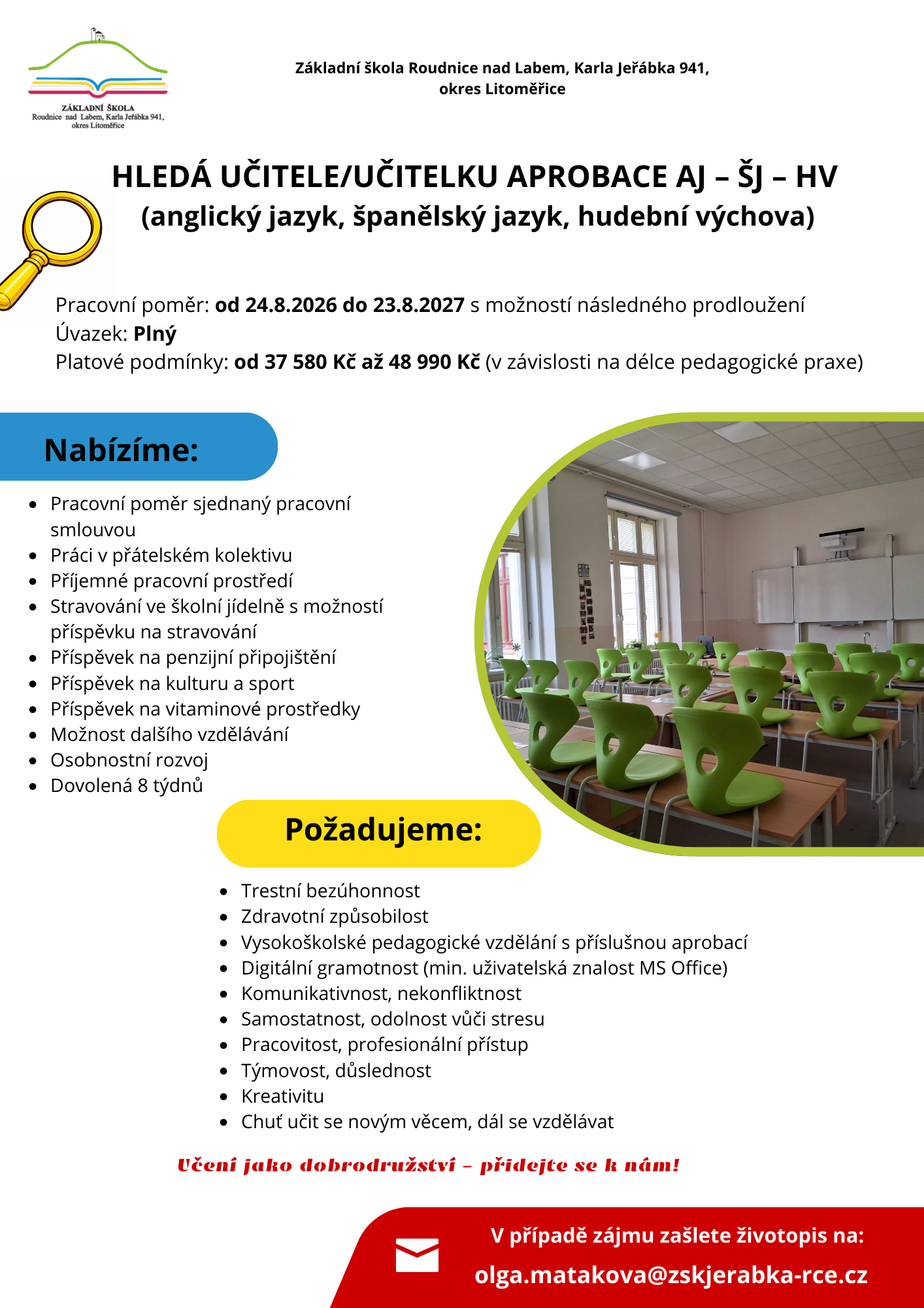 • podnětnou, avšak mající řád a pravidla, zkrátka školu, v níž nám je a bude fajn.