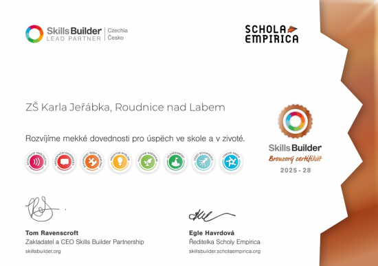 Na naší základní škole jsme si řekli: chceme, aby žáci odcházeli nejen se znalostmi, ale především se skutečnými dovednostmi do života. Že to zní složitě? Máme na to jasný systém — říká se mu Skills Builder, a od školního roku 2024-2025 ho používáme pravidelně od 1. ročníku až po 9. ročník.