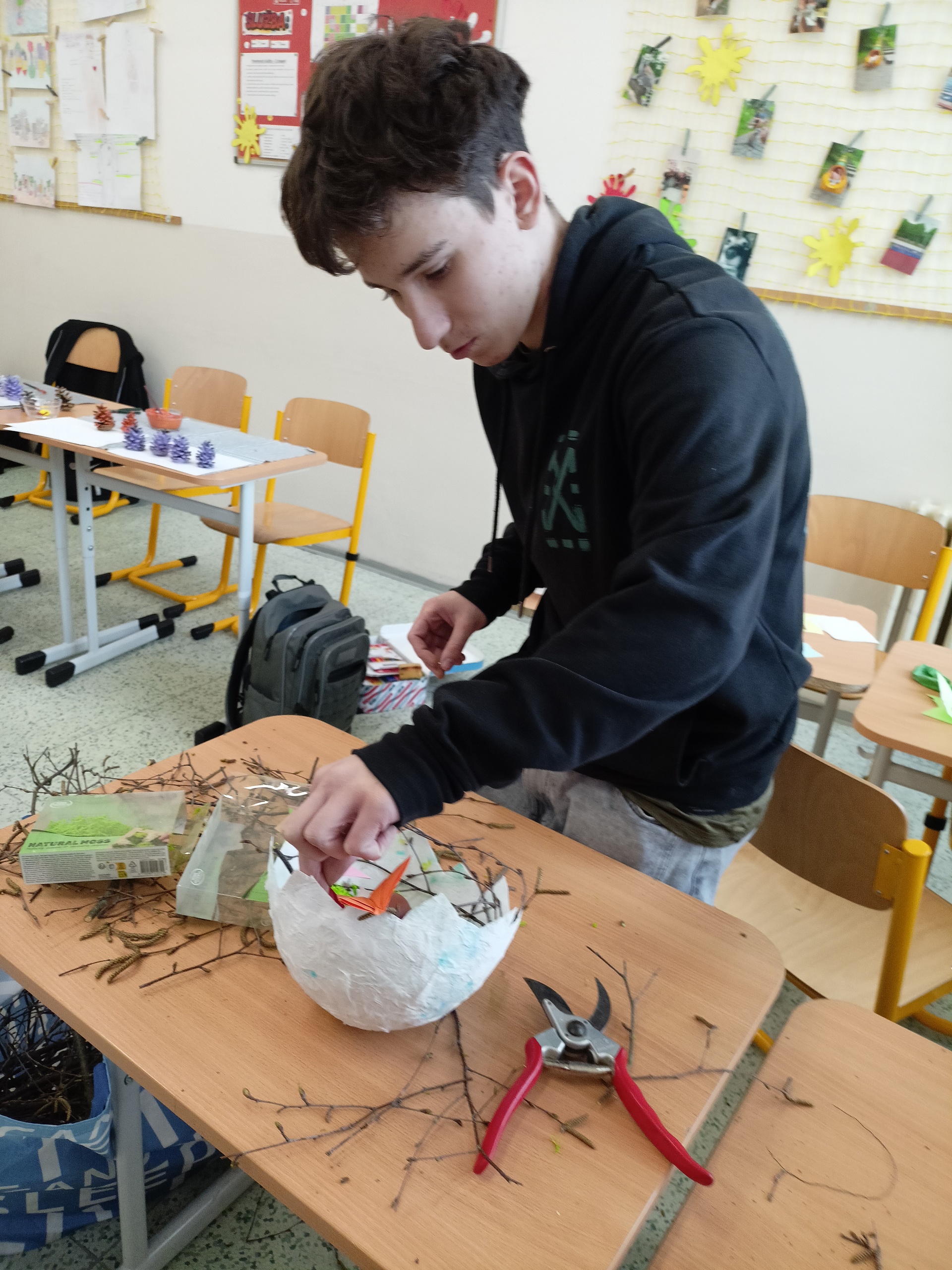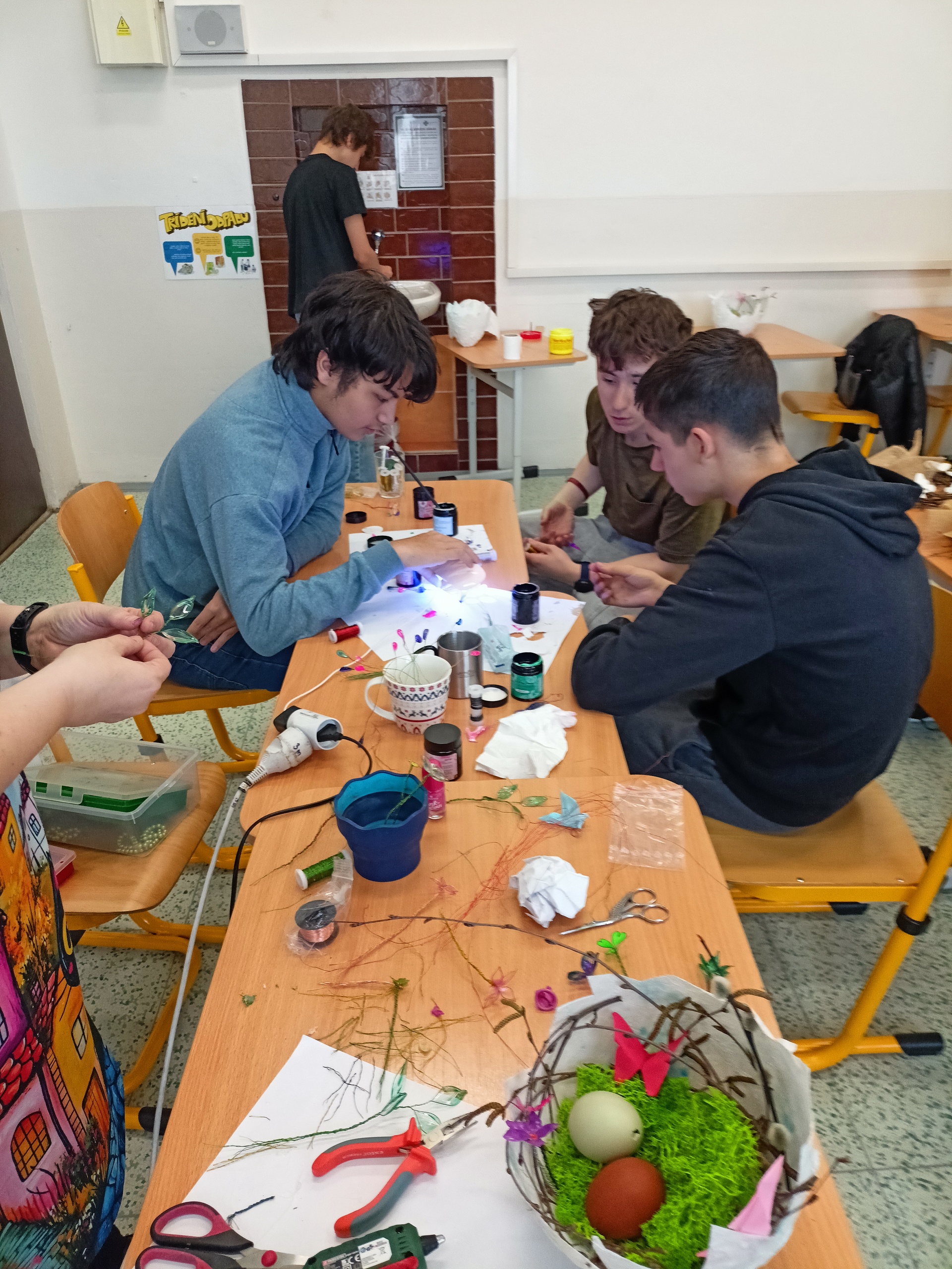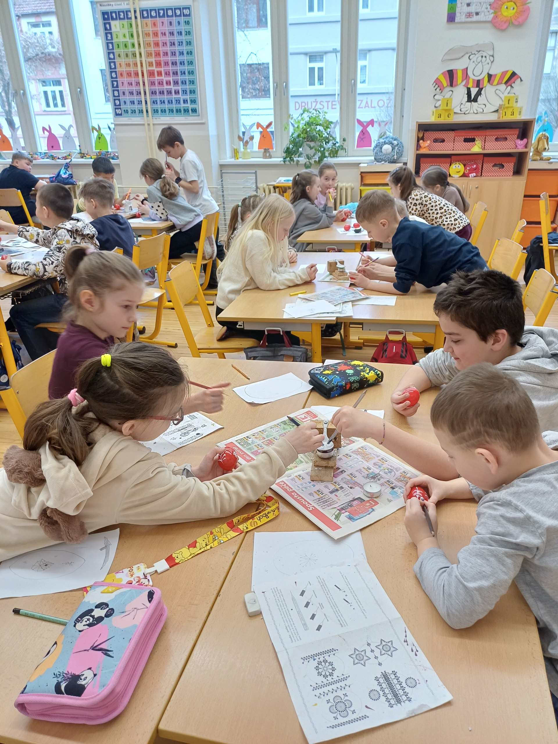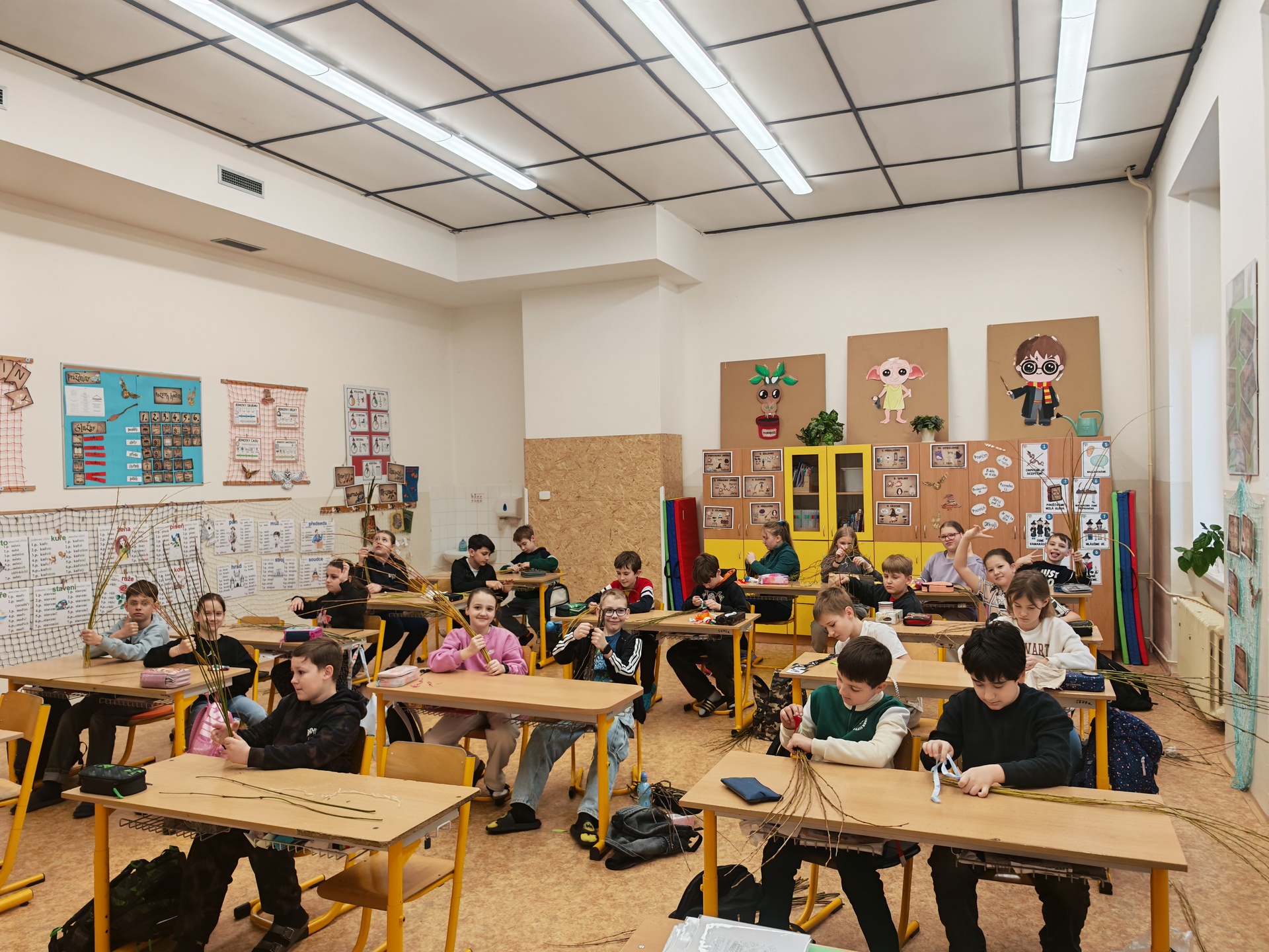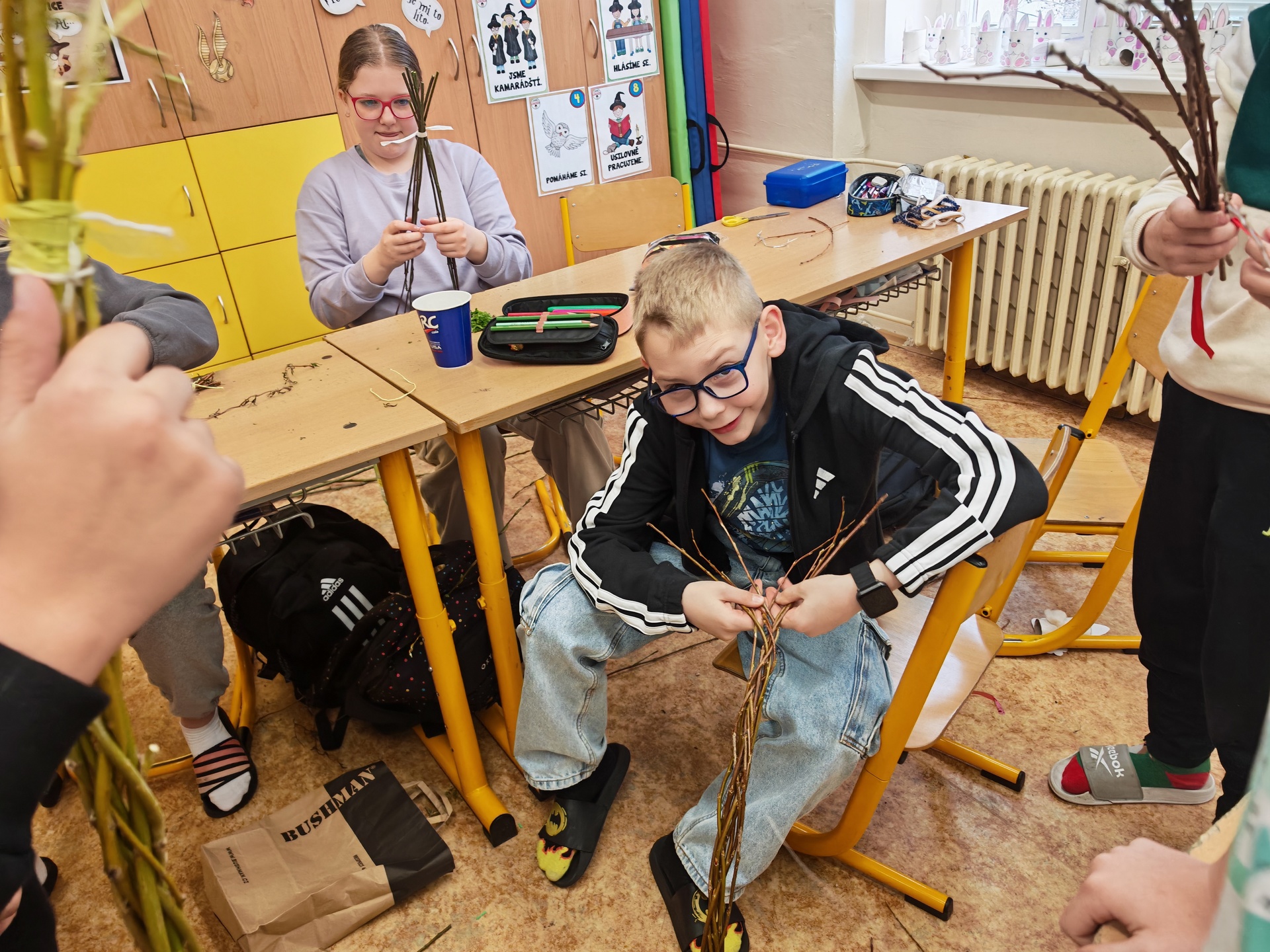 V závěru března proběhly na naší škole přípravy na Velikonoce. Vše začalo kreativním dnem 26. března, kdy žáci vyráběli jarní dekorace na blížící se jarmark. Seznam výrobků byl široký: od malování kraslic přes setí osiva až po výrobu věnců.