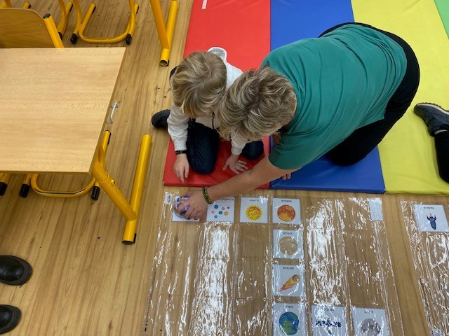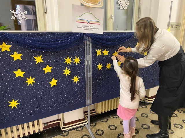 Hned u vstupu se malí návštěvníci proměnili v astronauty. Každý obdržel „palubní lístek“ v podobě hrací karty a mise mohla začít. Cíl byl jasný, navštívit co nejvíce planet a splnit úkoly. Za každý splněný úkol získali cestovatelé nálepku. Motivace byla obrovská. Kdo pokořil všechny nástrahy, obdržel zářivou hvězdu. Tu pak děti vlastnoručně zavěsily na naše společné hvězdné nebe, které se v průběhu odpoledne pod rukama malých objevitelů krásně rozsvítilo.
