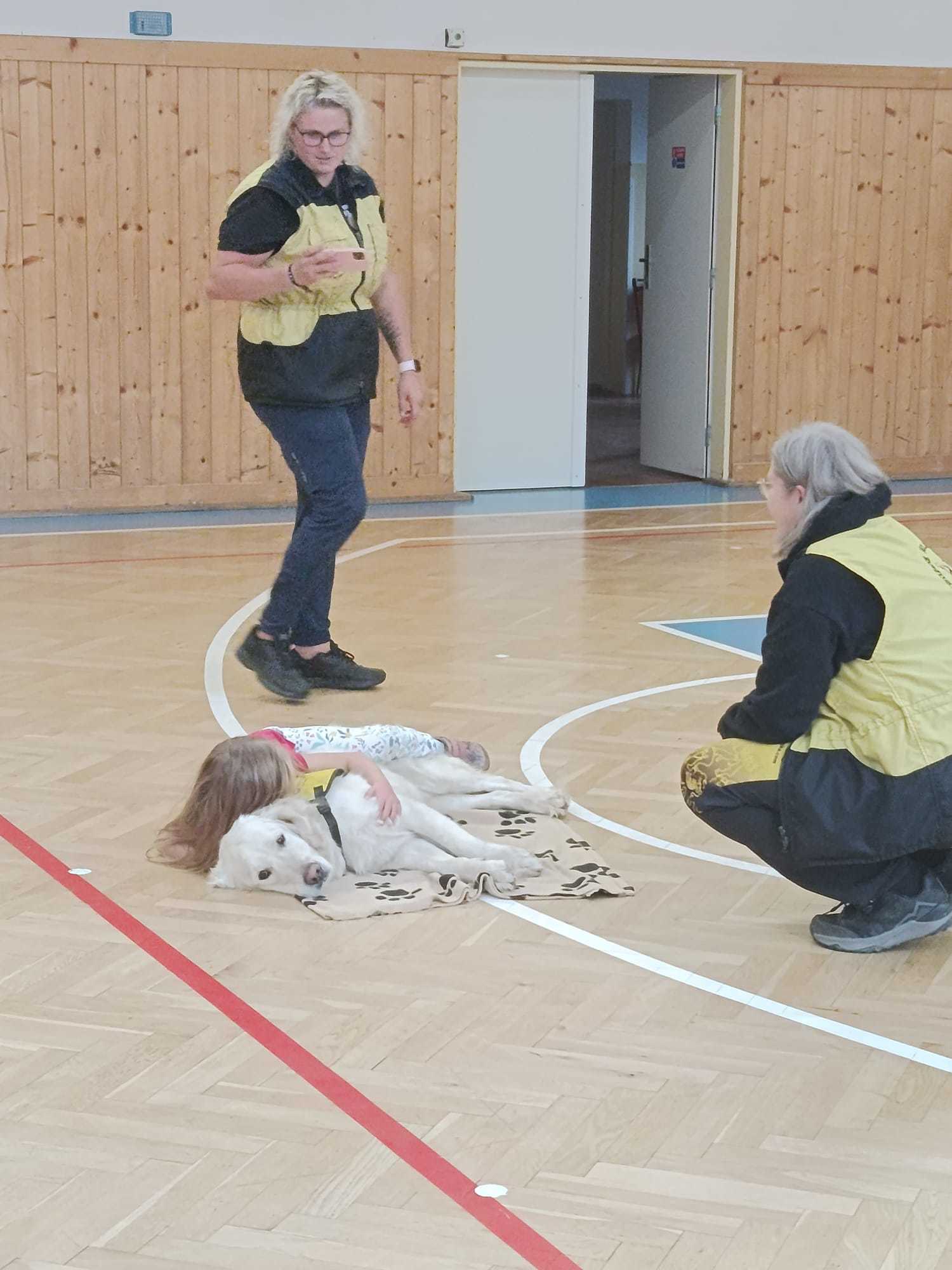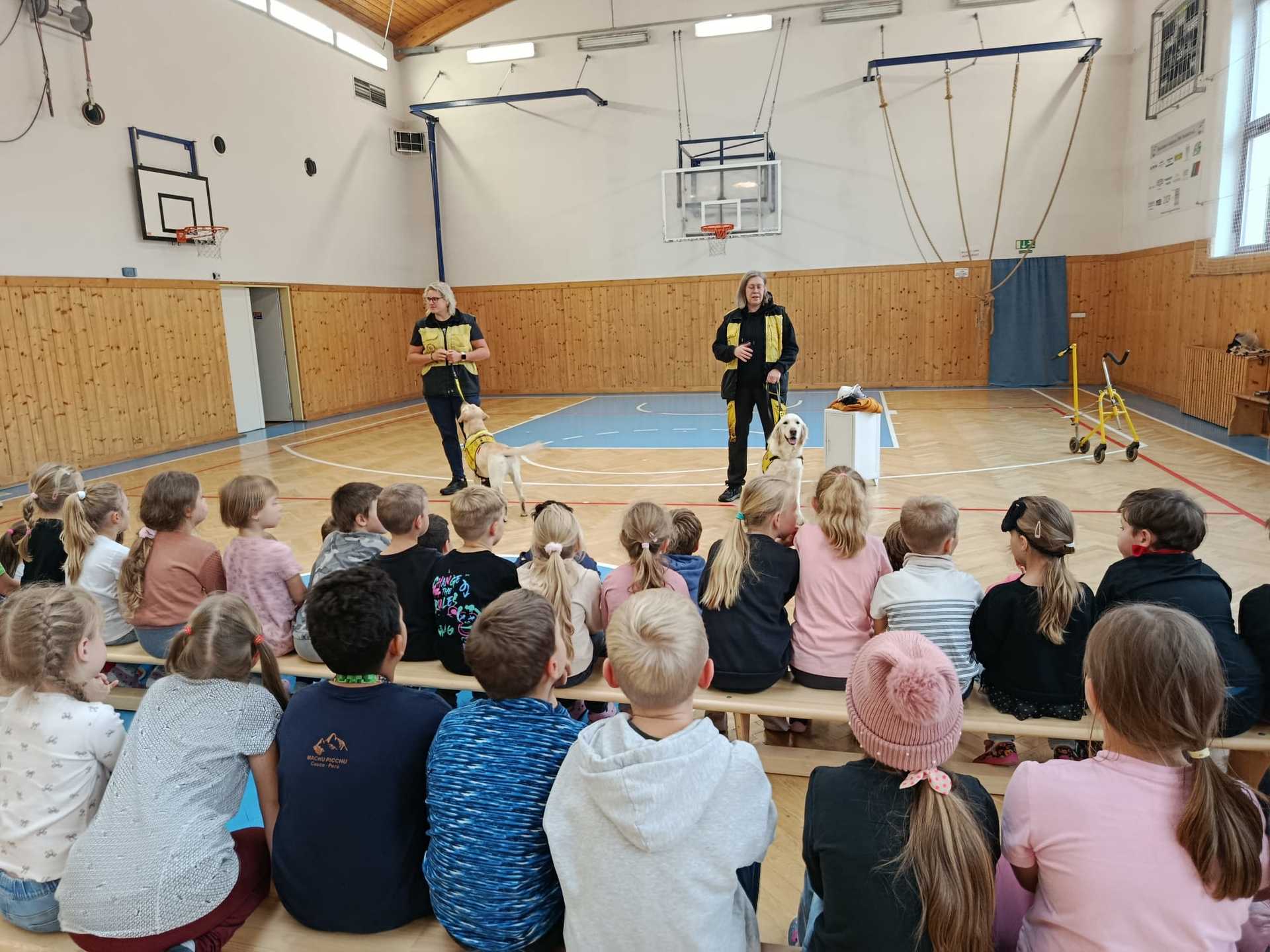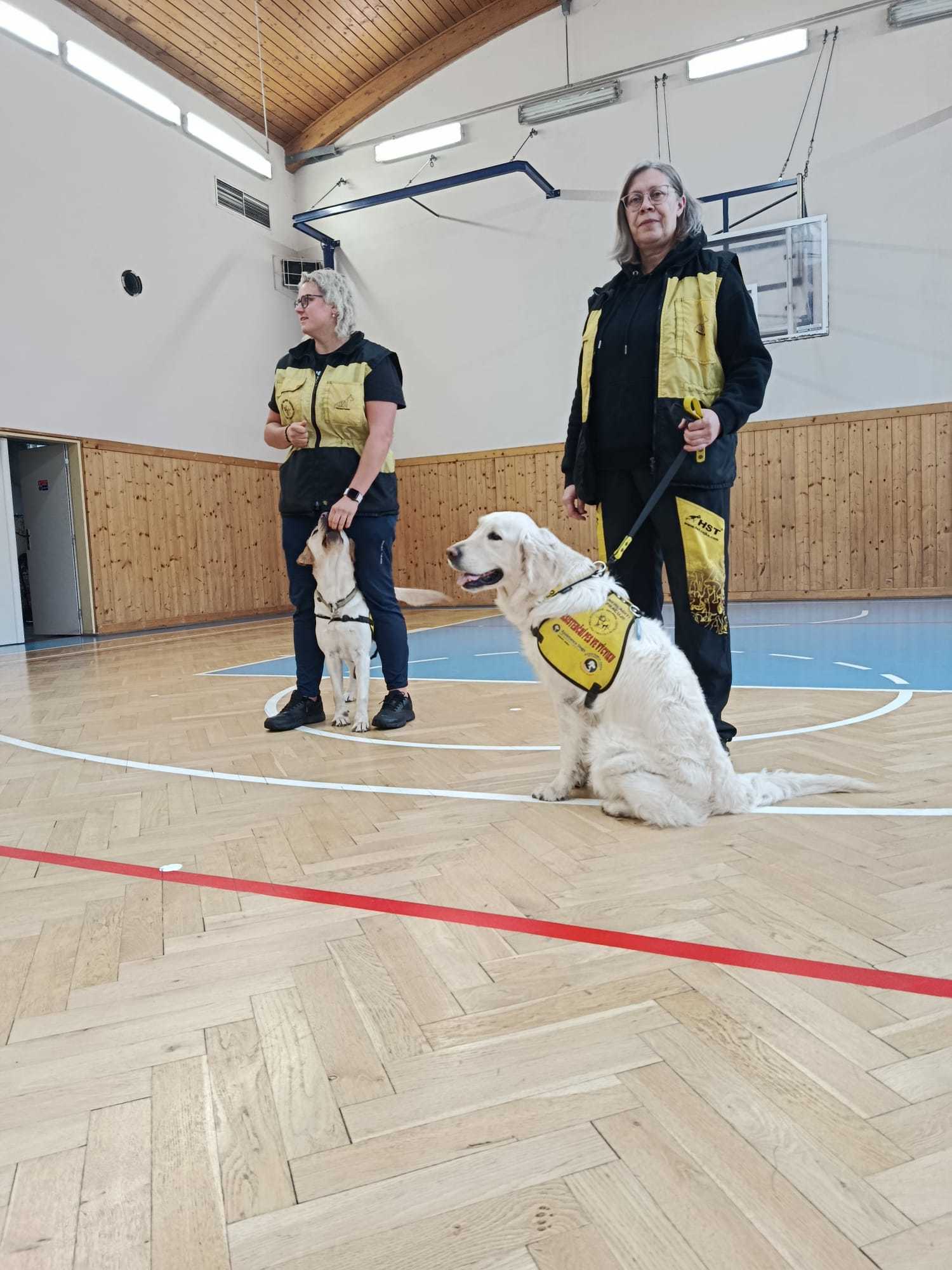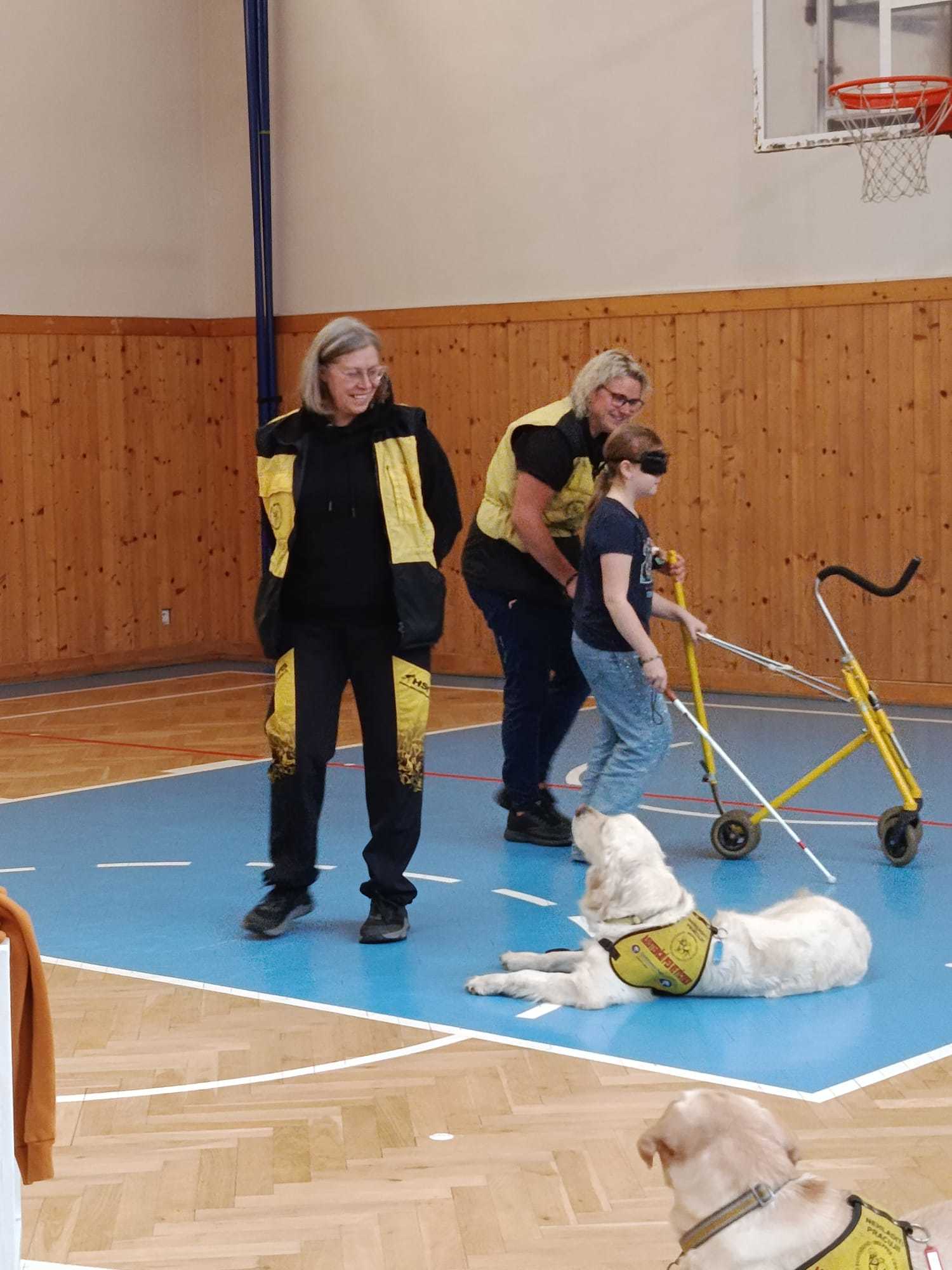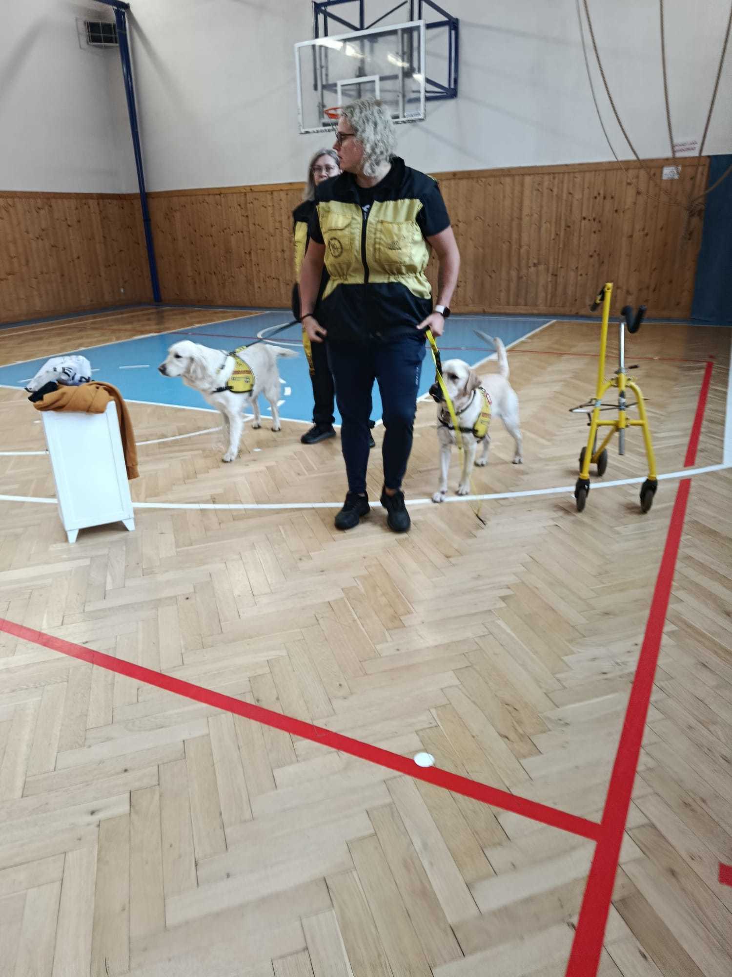 Na začátku trenérky psů představily své svěřence, které jsou momentálně ve výcviku. Také nás seznámily s tím, co tato práce obnáší, jak je financována, pro jaké lidi lze pejsky vycvičit - například pro nevidomé, neslyšící, pro lidi s autismem, ale také pro lidi, kteří se bojí ostatních lidí. Každý pes se cvičí dle potřeby klienta. Dozvěděli jsme se jak celý tento proces, od výcviku až po předání, funguje.