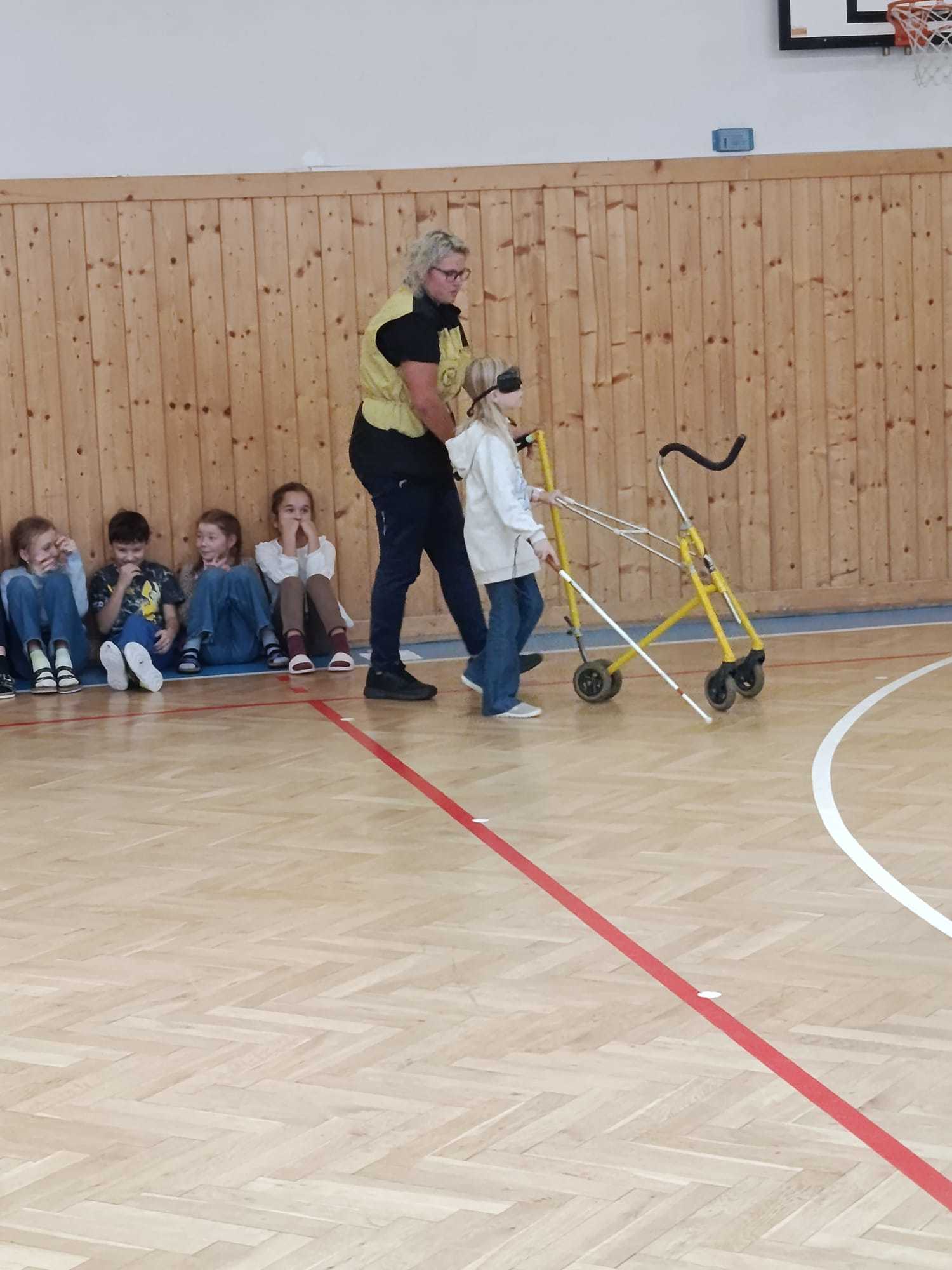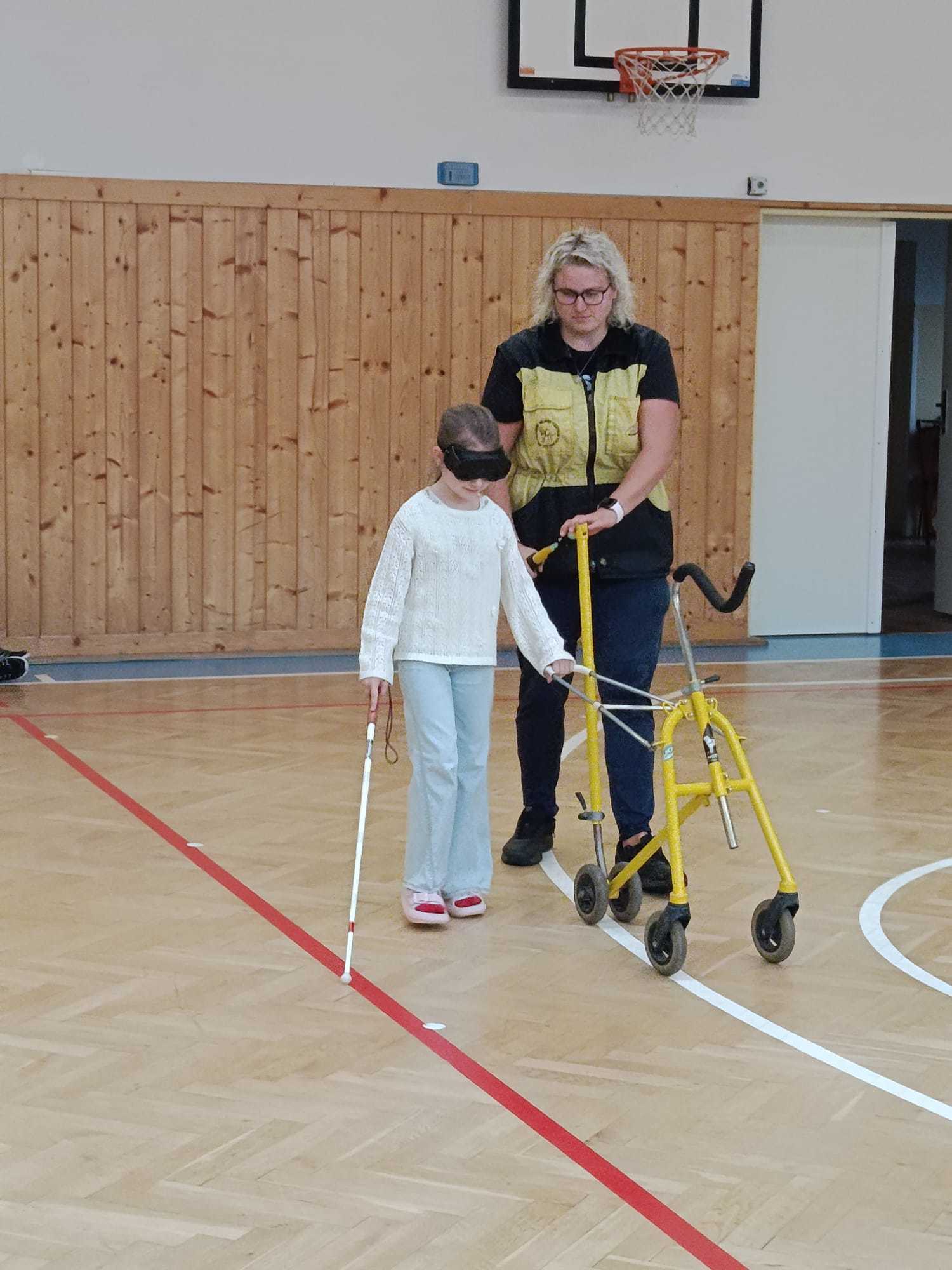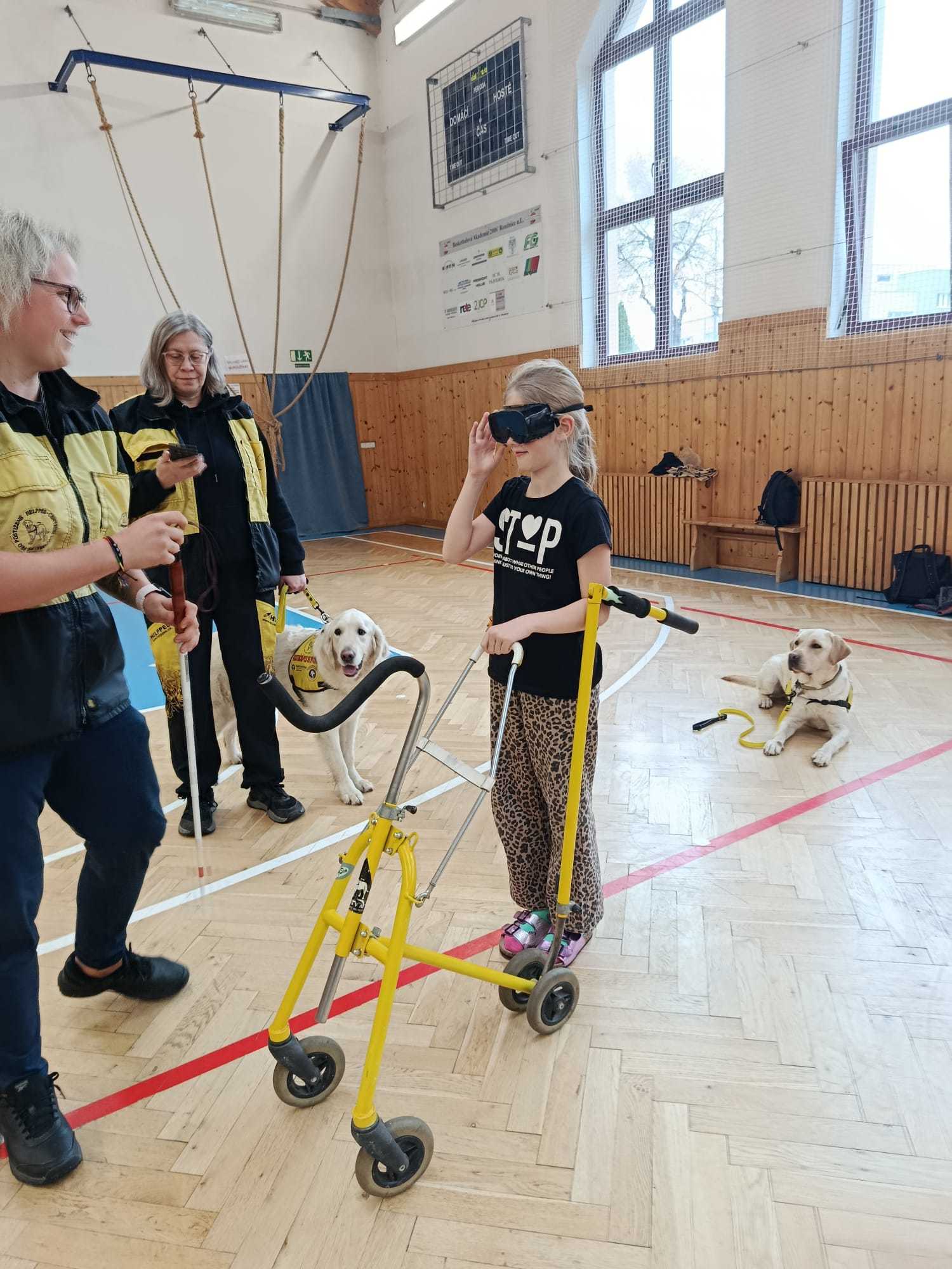 Dostaly tmavé brýle, přes které nebylo vidět, bílou hůlku a zkusily si, jak je těžké orientovat se v prostoru, když nic nevidí.
